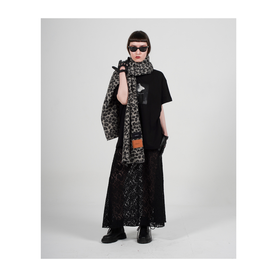 made from soft, lightweight fabric with a subtle gray leopard print, a stylish statement piece